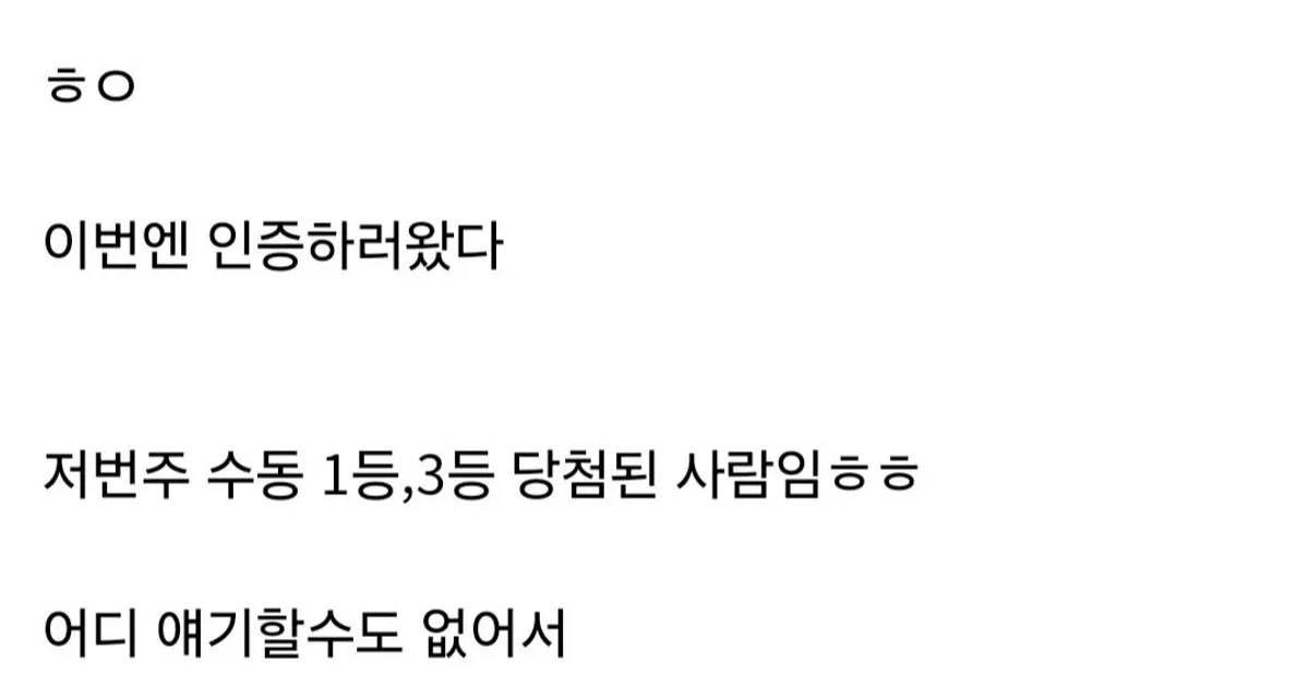 저번주 로또 1등 당첨 인증한 로또 갤러리 유저