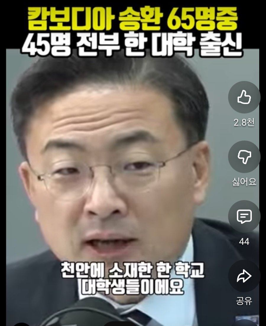 캄보디아 송환 64명 중 45명이 동일한 대학 출신 ,,